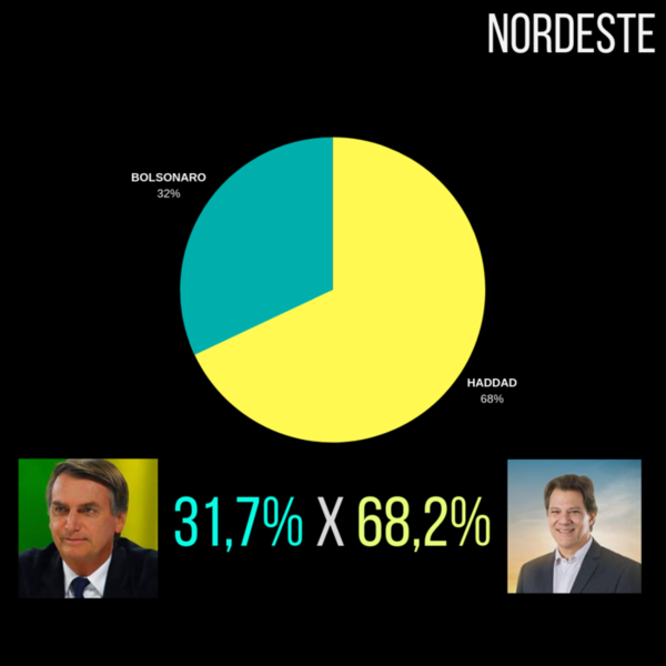 região em que o segundo lugar Fernando Haddad (PT) venceu o presidente eleito.