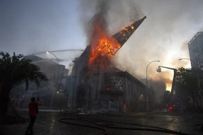 este dia de protestos em Santiago. Quando a cúpula pegou fogo após o