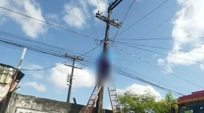 enquanto fazia serviço em um poste de energia, no bairro do Clima Bom, parte